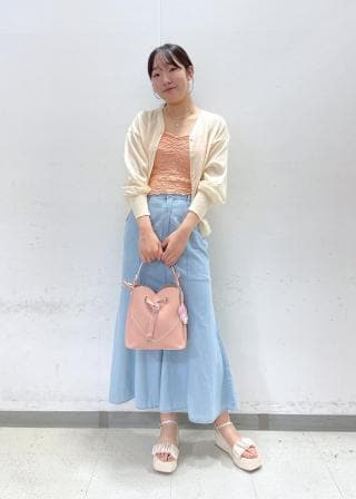 キャミソールに重ねて着用することで女性らしい抜け感を演出。デニムにはもちろん、キレイ目パンツやマーメイドスカートなどボトムを選ばずオンオフで着用できるアイテムです。ワンピースの羽織として着用するのもおすすめです!