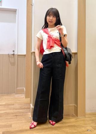 色が強すぎなくて合わせやすいです。シャリっとした生地感で涼しく着られます!