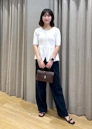 トレンドのペプラムデザインを簡単に取り入れられるよう広がりすぎないギャザーに落とし込みました。普段使いできる、でも華やぎのある夏のニットカーディガンです。