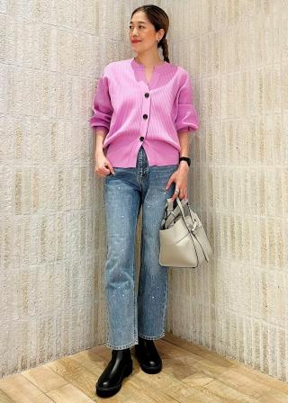 ・身頃と袖の編地を細い華奢な編地に変化させているところもこだわりのポイント!