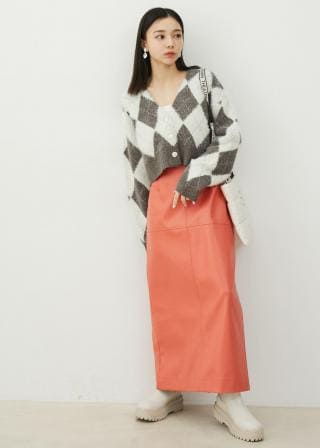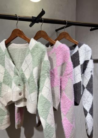 【新色】アーガイル柄Vネックシャギーニットカーディガン