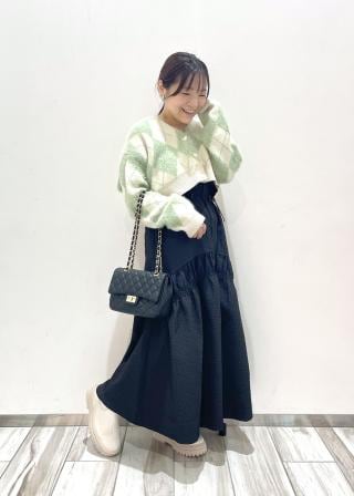 【新色】アーガイル柄Vネックシャギーニットカーディガン