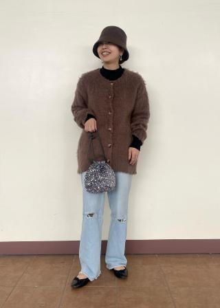程良くドロップショルダーでルーズ感があるのが推しポイントのカーディガンです!