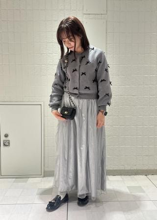 全体にリボンモチーフをあしらったニットカーディガンです。