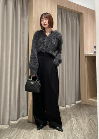 かわいくなりすぎるかなと思ったけど、チャコールの落ち着いた色なので大人世代でも着れて合わせやすいです。