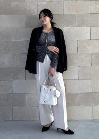 コンパクトなシルエットなので、ワイドボトムと合わせてスタイリングして頂くのがおすすめです。