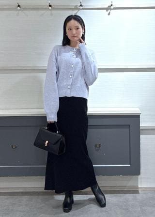着心地のよさ、着まわしやすさ、長く着られるシルエットにこだわっています。トップス使いと羽織り両方に使える着丈でボトムを選ばないサイズ感。袖口のリブでたくし上げられるので抜け感を出すこともできます。フロントはパール調釦で、第二釦はぷっくりハート形に。※ブラック(01),ブルー(44)のボタンは全て丸パール仕様となります。
