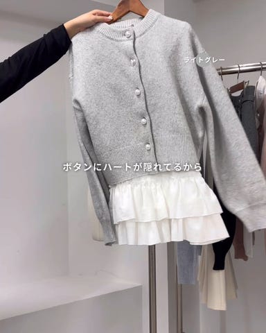 今年はティアードやフリルなどインナーの裾をチラ見せするとワンランク上のスタイリングに。ふわモコ&キラキラでコーデに華やかさが出る、女子の大好きが詰まったカーディガンです。
