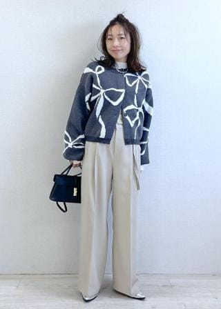 リボン柄は総柄に見えるよう、オリジナルでデザインしています!ゆったりとした丸みのあるシルエット。
