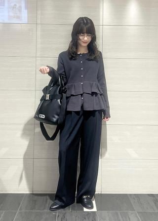 フロントのパール釦が清楚な女性のイメージで、裾のペプラムティアードが更にフェミニンンな女性がイメージできる1着です!