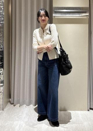 華奢でコンパクトなケーブル柄は、立体感があり高見えしてくれます。柔らかいタッチ感も肌ざわりが良く着心地がよいです。前立ての開きはヌケ感を演出してくれるので、着ぶくれせずにレイヤードを楽しめます。