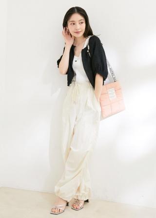 タンクトップに軽く羽織りが欲しい時に役立つ可愛いらしい黒です