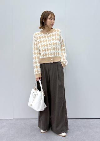 ミニアーガイル柄ビックパールボタンカーディガン