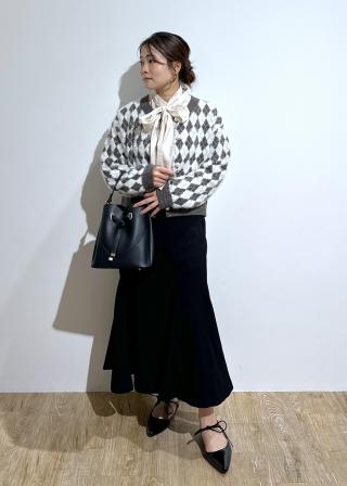ボトムはカジュアルにデニムや腰回りがすっきりとしたスカートと合わせやすい丈感になっています。