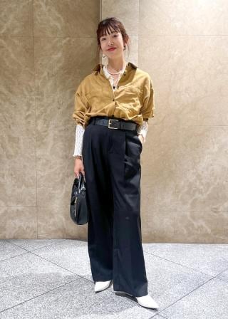 美easyシリーズやタックパンツなどキレイめ素材のボトムと好相性。デニムパンツなどでカジュアルにスタイリングしていただくのもおすすめ。