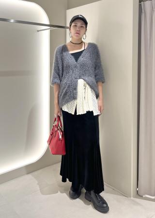 コンパクトなトップスカーデなのでボトムにボリュームを持たせるとバランスよくご着用いただけます。きれいめな印象はキープしつつ、どこか抜け感のある“今っぽフェミニン”が完成する一枚です。