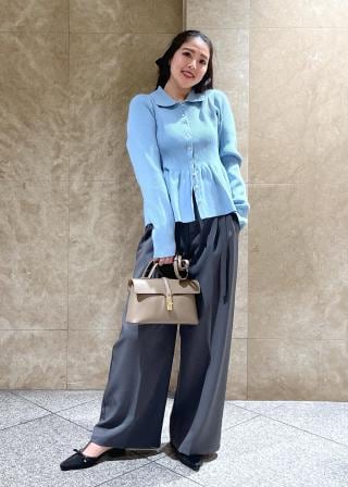 襟付きのカーディガンですがペプラムシルエットなので一枚着の様に着るのがおすすめ!
