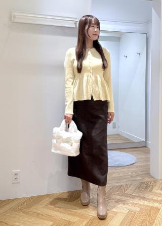 ・人気のペプラムシルエットをモール糸で秋冬の暖かいニットで表現。