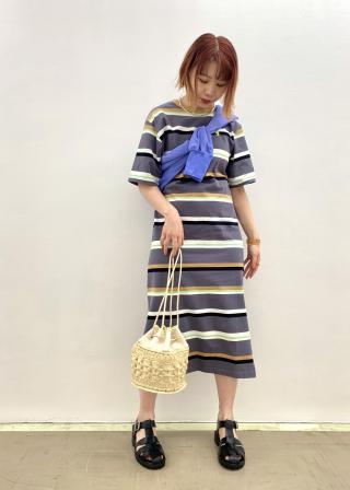 オフホワイト・ネイビー着用モデル身長:160cm、着用サイズ:F