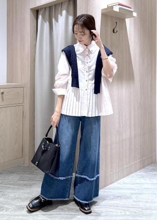 デニム合わせはもちろん、前ボタンを閉めて1枚着として着用し、ジャケットを羽織ったり、スラックスやショートパンツ、スカートを合わせたトラッドスタイルもおすすめ。