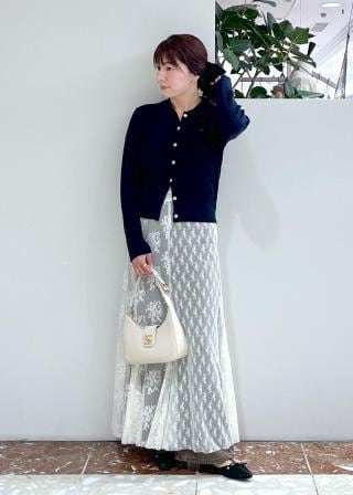 ・クルーネックのカーディガンより着丈を長めにしスタイリッシュな印象に。