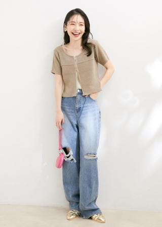 ハイウエストボトムに合わせて手軽にトレンドスタイルが作れます◎