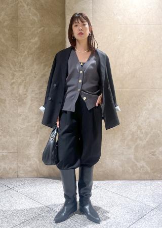 サラッと思った以上に軽めの素材感で、厚みも出ないため、着膨れ感もなくスッキリとした印象。