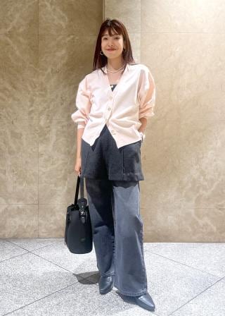 写真のコーディネートではインナーにキャミソールを着用していますが、Tシャツ、シャツなども着られそうな余裕もあり◎