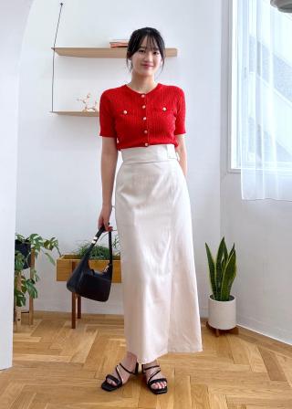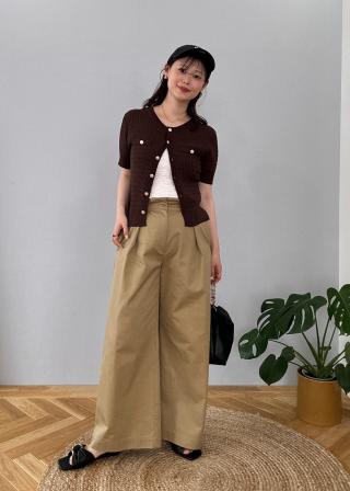 きれいめなテーパードパンツや、タイトスカートと合わせれば、通勤やオフィスカジュアルにぴったりな上品コーデに。