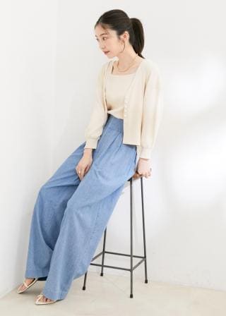 カーディガンとタンクはそれぞれ単品で違うアイテムとも合わせてコーディネートができるのでおすすめです!