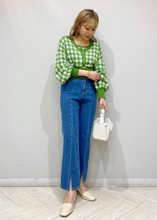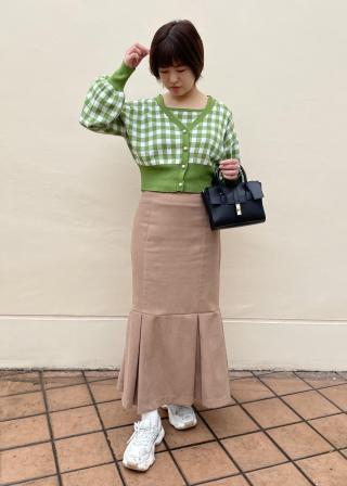 春らしいギンガムチェックカーディガン。