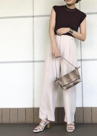 フレアスカートやワイドパンツに合わせたキレイめスタイリングもおすすめです。