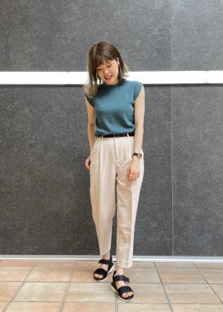 体にフィットするシルエットで、ボトムを問わず着ていただけます。