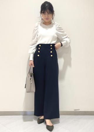 今年注目キーワードの「シャーリング」を袖に落し込んだトレンド感溢れるニット。