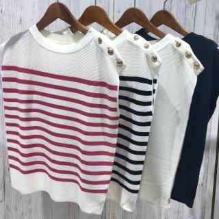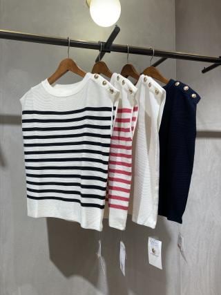 さわやかなカジュアル感のあるオフホワイトベース×ブラックボーダー、オフワイトベース×ピンクボーダー、無地のダークネイビー、爽やかなオフワイトの4色展開です。