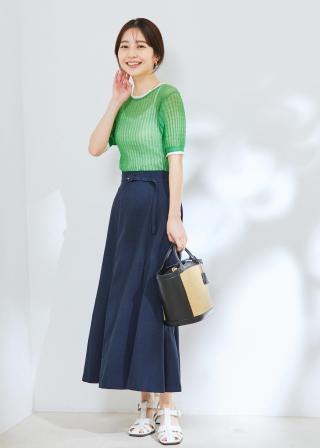 程よいシアー感のニットは柔らかい素材で腕周りを締め付けず◎