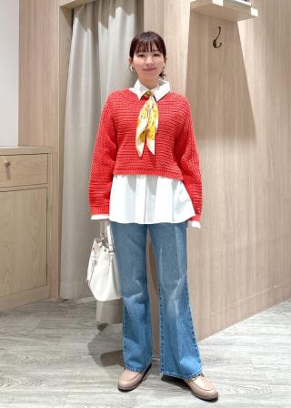 シャツ合わせや薄手のカットソー、またロンTなどレイヤードスタイルがおすすめです。
