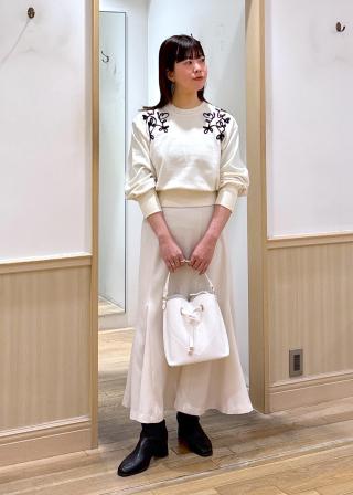 春アウターのインナーでも映える刺繍が可愛い!春らしくスカーフを加えてもオシャレな着こなしになります。