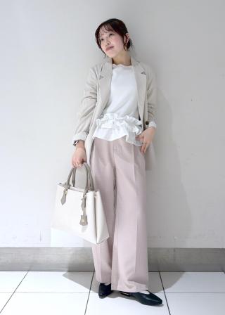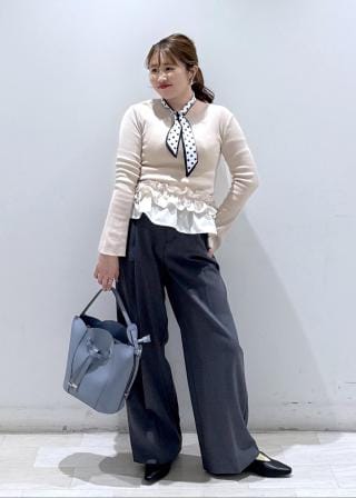 オンオフ着ていただけるデザインなので、デニムにもスラックスにも相性抜群。同系色で合わせても今年らしいです!肌寒い時期はジャケットにも合わせやすいバランス感となっています。