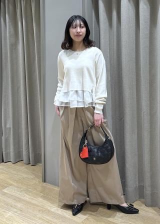 ・裾からオーガンジーペプラムが見えているドッキングニット。
