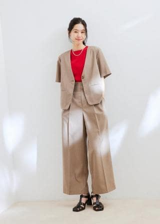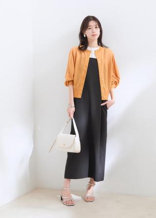 ・袖丈はフレンチスリーブで、気になる二の腕をカバーする絶妙な長さにしています。