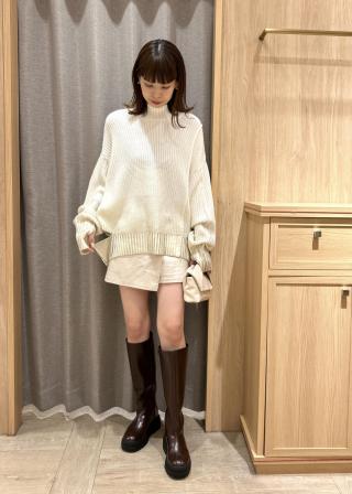 女性らしいシルエットに辛口なデザインのニットなので甘めのデザインのスカートでテイストMIXコーデがおすすめです。