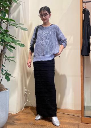 シャリ感のある素材。肌触りが心地良く、トレンドのシアー感とナチュラルな着心地のニット。