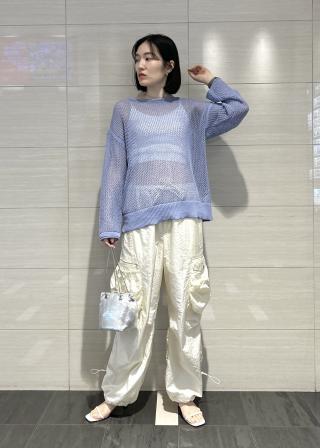 シャリ感のある素材。肌触りが心地良く、トレンドのシアー感とナチュラルな着心地のニット。