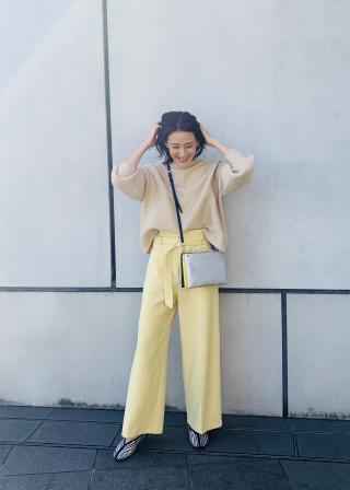 ハイウエストのボトムとのコーディネートもおすすめです。
