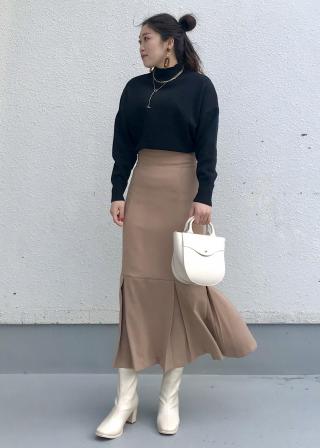 シンプルなニットで、パンツ、スカートどちらでも合わせやすいです。