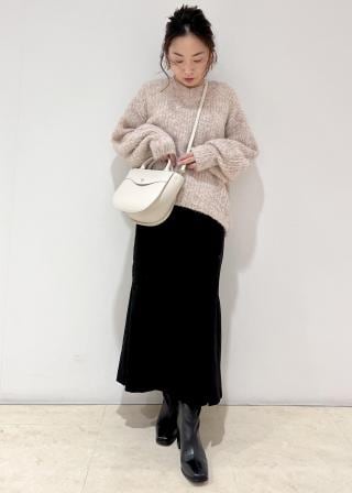 メランジ調の糸を使用し、ふんわりと編み込んだリラックス感のあるローゲージニット。