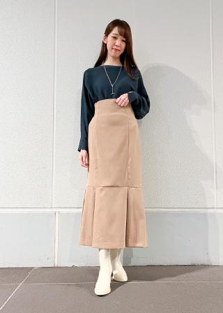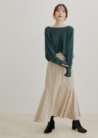 ボートネックのシャープさは上品で大人っぽい色気を演出します。
