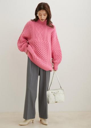 立体感のある大きめのケーブルや、程よいハイネックで大人っぽく仕上げたニットプルオーバー。