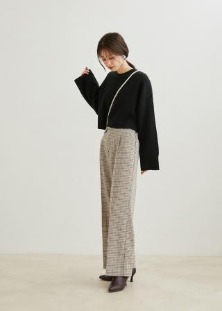 ワイドスリーブに幅広な身巾のショート丈のニットです。